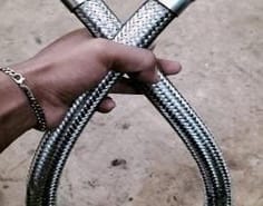 Flexible Hose CS pipe 5cm right and left, Product Material: Full Stainless 304 for flexible and braid, Connection: CS/SS pipe, Rating: 150 Psi, Max Temperature: 200°C, Max Pressure: 10 Bar / 150 Psi
